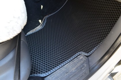 Автоковрики ЕВА не впитывают, а удерживают грязь в ячейках. Вода не катается по полу, как в резиновых половичках, однако, её все равно видно. ЕВА удобны тем, что их легко достать не пролив и вытряхнуть. Они дешевле.