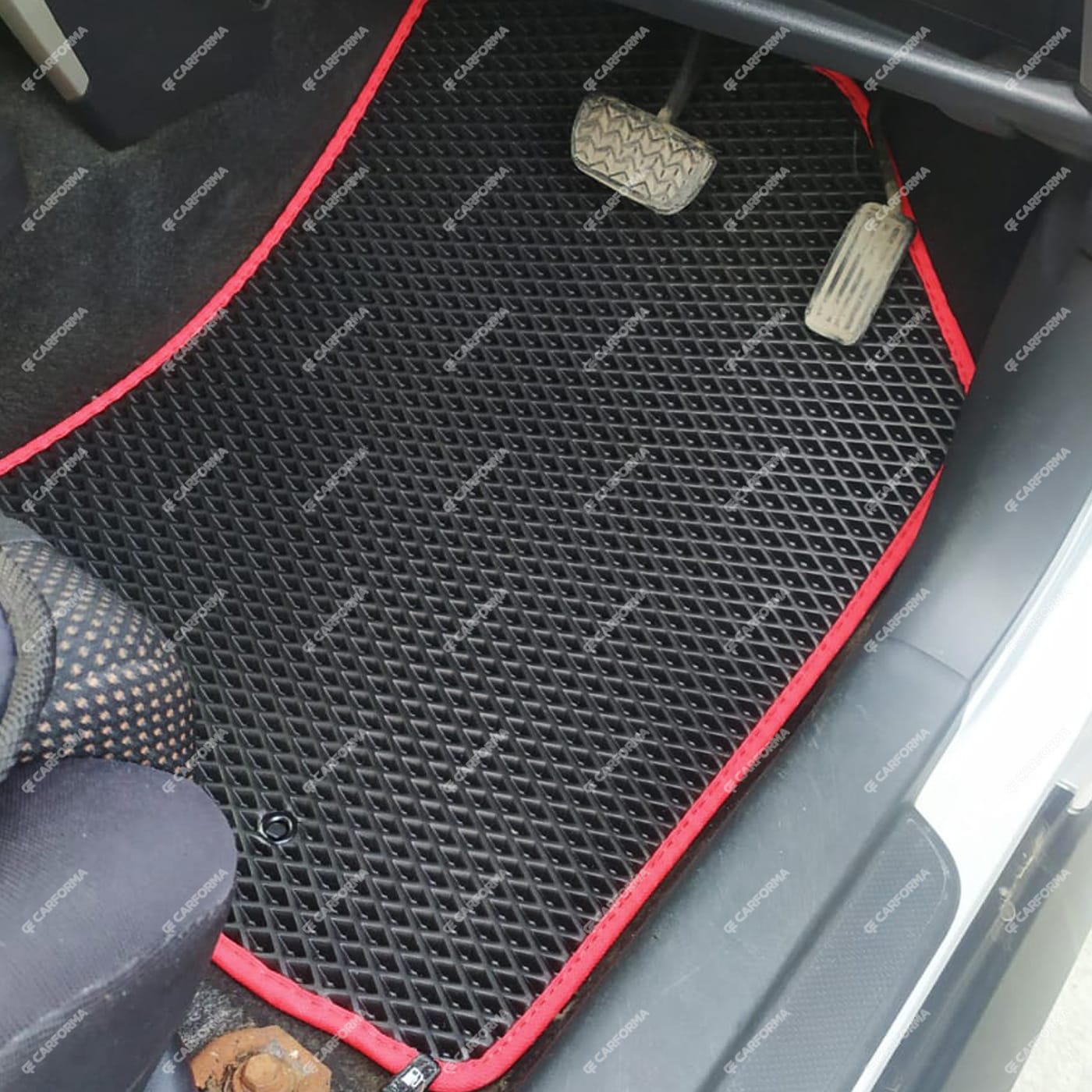 - Передние ковры полностью закрывают место под левую ногу водителя (зависит от авто)